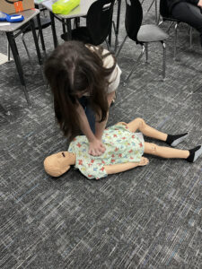 “I really liked helping my mom with the CPR demonstration,” said Annabella. “I showed my class the right way to position someone when performing CPR.”