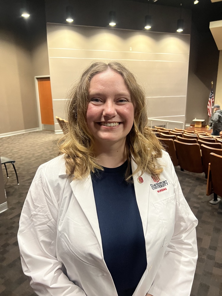 Davenport MSN student Emma Nellis was among the students who walked across the stage to receive her white coat and was excited to be part of the ceremony for several reasons. As a remote student, she appreciated the opportunity to meet her professors and classmates in person and to share the experience with them. “I’m proud to say I participated in the White Coat Ceremony,” said Nellis. “Receiving my white coat means so much because this profession is like no other. I haven’t been a nurse very long, but I know that my passion for nursing will carry me through my entire career.”