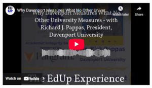 President Richard J. Pappas, Ed.D., was a guest on the EdUp Experience podcast that is part of the Academic Integrity series. The conversation was released August 7, 2025. The title of his episode is, “Why Davenport Measures What No Other University Measures.” Pappas goes beyond looking at cheating as defining academic integrity. He talked about what a university promises students and how they succeed when they graduate. The conversation also addresses the monumental changes coming with artificial intelligence.Listen to the entire conversation here.