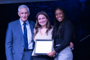 Davenport President Richard J. Pappas, Madison Phillips and Majesty White, Davenport senior admissions representative.