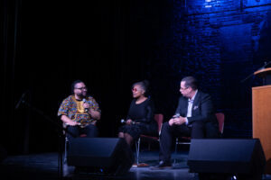 Panelists Leadriane Roby, superintendent of Grand Rapids Public Schools, and Rev. Jerry Bishop, senior pastor at Lifequest Urban Outreach Center, engaged in an honest conversation that organizers hope will lead to tangible action in the local community.