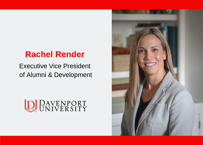 Davenport University announced on March 12, 2019 that it has named Rachel Render as its new executive vice president of alumni and development.